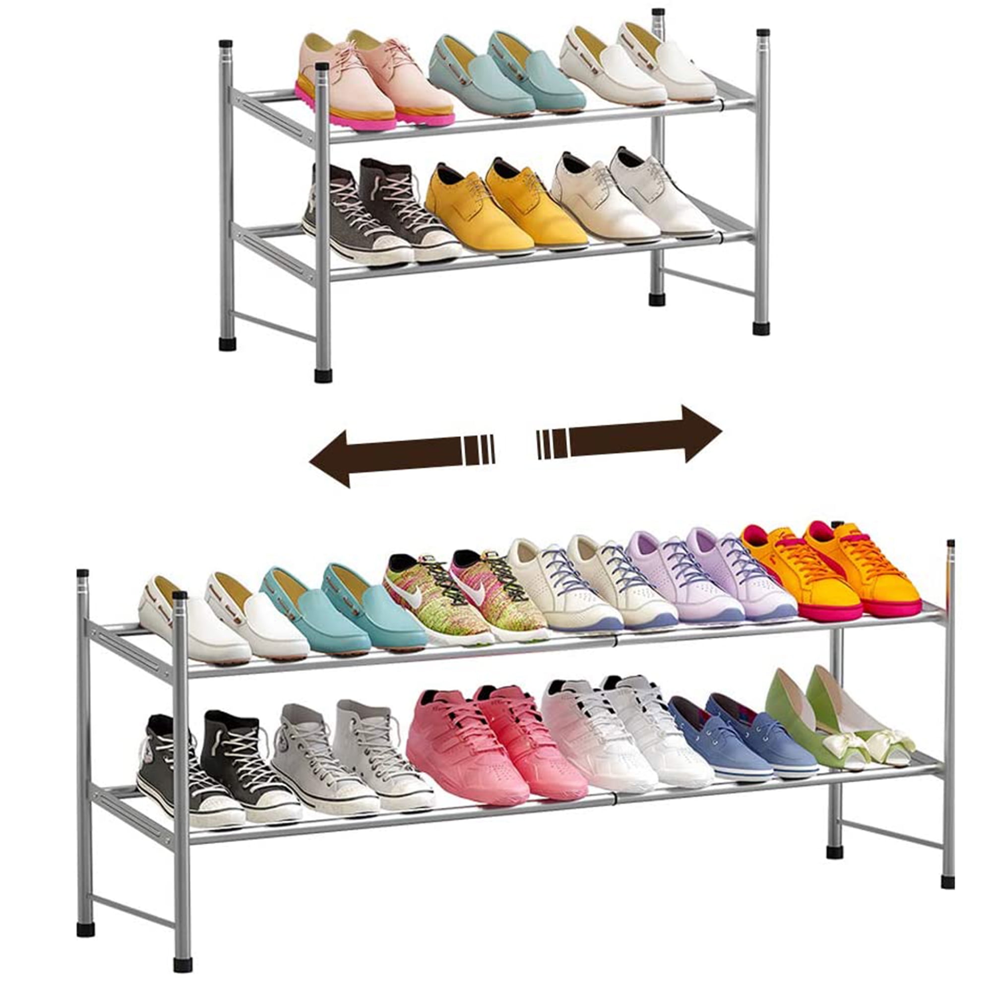 Forthcan Expandable Shoe Rack 2 Tiers Closet Shoe Organizer Shelf For Shoes 12 Pairs Gray Walmart Com