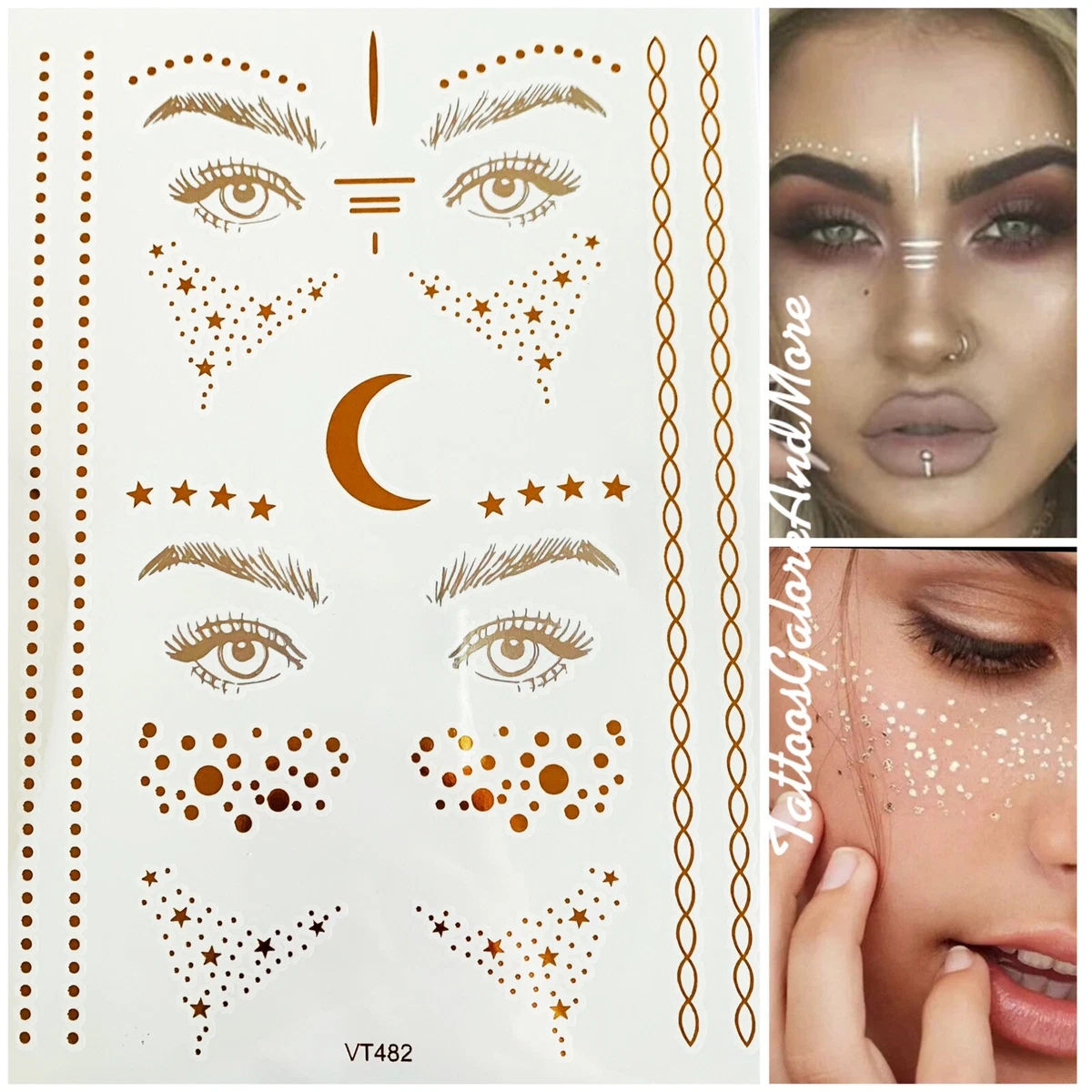 Gold Star Henna Temporary Tattoo Freckle Face Tattoo Festival Lines Moon Ebay